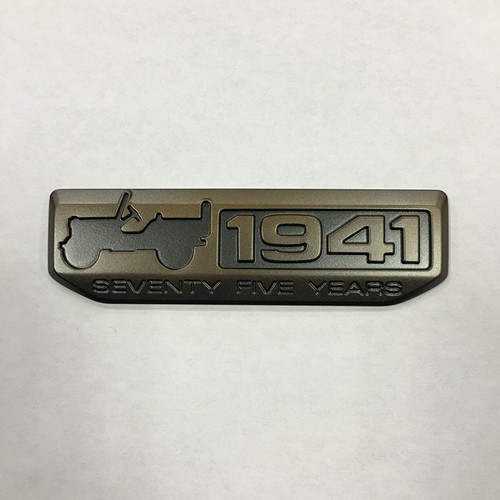 Celebrate the 75th anniversary of America’s most iconic line of vehicles. This limited edition, bronze and black aluminum badge installs in seconds with a double-sided adhesive backing and is made to last another 75 years.