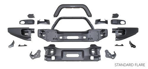 The stamped, full-width design of the EX Front Bumper doesn’t just look the part, it offers maximum protection for the vital front suspension components that can often leave a vehicle disabled when damaged in a collision. Additionally, the EX Front Bumper’s aerodynamic design helps direct air up and over the Wrangler’s fender flares instead of trapping the air inside the flare as many aftermarket bumpers do, which increases drag and reduces fuel economy. With the EX Front Bumper, the additional benefits of its full-width design do NOT come at the expense of decreased tire clearance or approach angle. In fact, the EX Front Bumper sits higher and offers a better approach angle than the factory winch bumper.