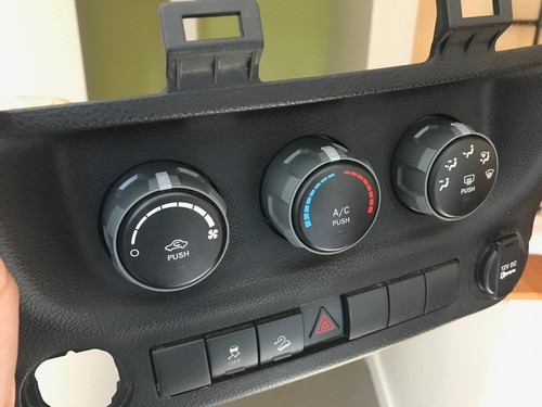 INCLUDES 3 KNOBS Replacement climate control rings for the 2011-2018 Wrangler JK. Does not fit 2007-2010 JK, or 2018+ JL.