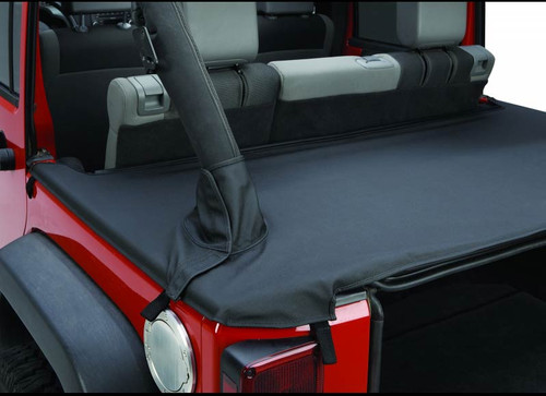 The Duster tonneau cover is made by Bestop and approved by Mopar. It’s part of a full line of Mopar-approved accessories for Jeep Wrangler’s with soft tops. The Duster tonneau cover is available for both two-door and four-door Wranglers and covers the rear to keep cargo out of sight and protect it from rain, dirt and sunlight. For four-door models, also order the tonneau extension to cover the rear seats.