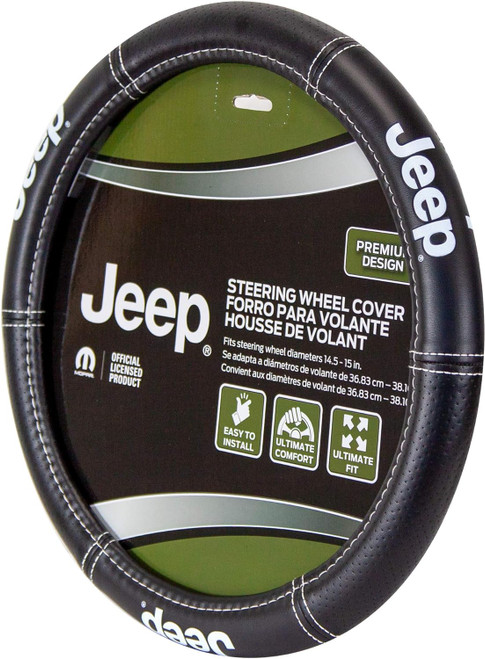 Elevate the aesthetic of your Jeep’s interior with Plasticolor’s Deluxe Jeep Logo Steering Wheel Cover, offering both style and a secure grip. Adorned with iconic Jeep logos and accented by stylish white contrast stitching, this officially licensed cover is designed to fit most Jeep vehicles with steering wheel diameters of 14.5-15 inches. Experience protection against extreme temperatures and enhanced comfort, buffering the impact of aggressive steering in challenging conditions. Crafted from durable and easy-to-clean vinyl, these covers not only withstand the test of time but also seamlessly complement Plasticolor’s entire range of officially licensed Jeep interior accents, available separately.