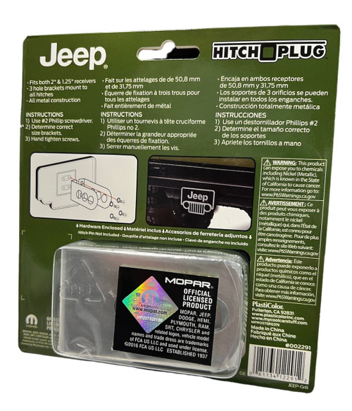 Prevent dirt and grime from infiltrating your 2″ or 1 3/4″ receiver hitches while showcasing your admiration for the iconic Jeep Grill design. This robust accessory boasts an all-metal construction, laser-etched for an enduring finish that withstands the test of time. The brushed aluminum is accentuated with a black semi-gloss powder coating for added durability and style. Please note that the pin and clip are not included.