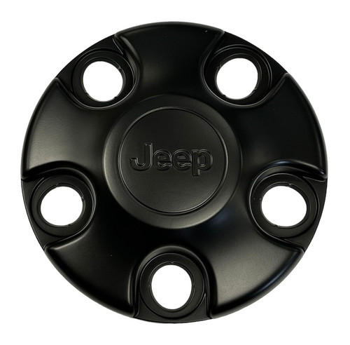 Mopar factory Black center cap with the Jeep logo for the Black factory steel wheels on the 2018-2024 Wrangler JL and 2020-2024 Gladiator JT.