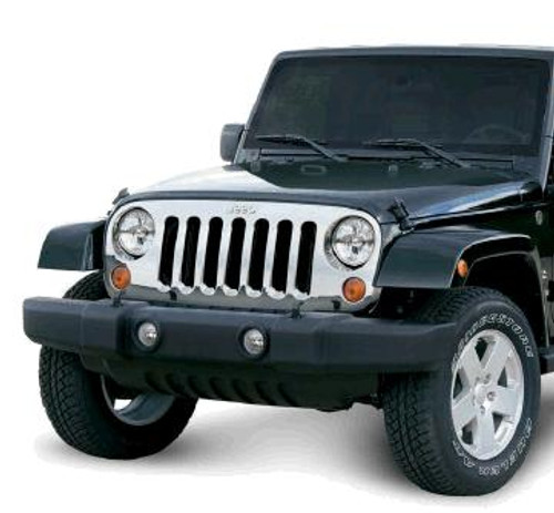 At JustforJeeps.com, we know you take pride in your ride and want to personalize its looks, so we carry quality accessories so you can create just the right style for your 2007-2018 JK Jeep Wrangler. This chrome grill is a good way to add some shine and dress up your Wrangler. The chrome grill is designed for quick and easy installation and it will not affect the flow of air into the radiator or get in the way of opening or closing the hood. All parts are designed to meet Chrysler standards for durability. Grill will not adversely affect engine airflow or impede the opening and closing of the hood.