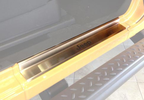 Every time you get in and out of your Jeep Wrangler, it’s another opportunity for scratches to mar the interior door sills. You can protect this high-traffic area and add a finished, stylish look to your Wrangler by adding a set of door sill guards. These door sill guards are available for both two-door and four-door Wranglers in two versions: a black plastic and a bright stainless steel, both of which feature the Jeep logo. Order the part number you want from the list below.
