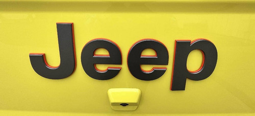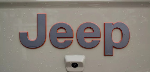 Mopar factory Orange and Gray “Jeep” Badge that goes on the tailgate of the JT Gladiator Mojave.
