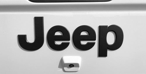 Mopar factory Satin Black “Jeep” badge on the tailgate of the 2020-2025 JT Gladiator.