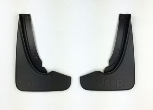 Comes as a set of two black front or rear splash guards. Jeep logo on rear set only.