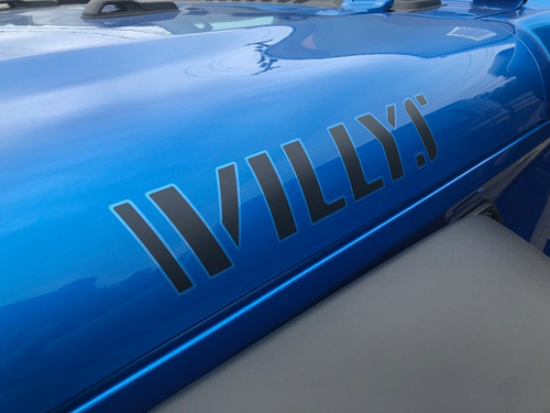 Mopar factory hood decal for the Willys edition JL Wrangler, including 4xe, or JT Gladiator. Decal is available in either All Black or Black and Blue.