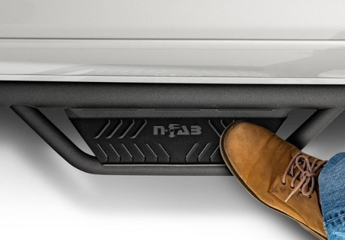 Patented N-FAB hoop step design featuring an all-new expanded and enclosed sure grip step plate, for ultimate vehicle access in any condition. The N-FAB Podium Steps has a 3″ Main tube diameter, allowing this application to fit high & tight to the vehicle body for a clean modern style. Created from Stainless Steel construction, the N-FAB Podium Steps are available with either a high polish finish or textured black powder coat. The N-FAB Podium Steps has a 5-year finish warranty on textured black finish and lifetime craftsmanship warranty. For the ultimate vehicle access experience in any condition!