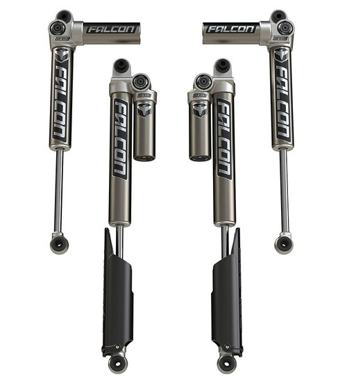 Overview: Falcon SP2 3.1 Piggyback Shocks deliver increased stability, improved ride quality, and comfort on road, while the increased compression damping provides more aggressive off-road handling. SP2 3.1 Shocks have been optimized for on- and off-road driving. “High-Value Performance” is the driving force behind our vehicle-specific dampers for Jeeps, trucks, and SUVs. These Jeep-specific shock absorbers deliver increased stability, improved ride quality, and comfort for daily-driven vehicles as well as race-inspired performance, handling, and stability for off-road rigs. Falcon Performance Shocks by TeraFlex. SP2 3.1 Monotube Shocks: