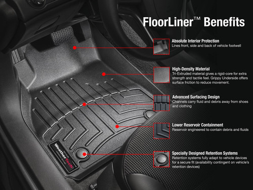 Completely protect the carpeting of your Jeep Cherokee with WeatherTech’s DigitalFit Floor Mats. Using grid laser measurement technology, WeatherTech has designed a floor mat that is precisely formed to your Jeep’s floor and provides unmatched protection from the elements. With high side walls that contour to your Jeep’s body tub, DigitalFit Mats easily trap and contain any water, mud, or debris that could damage or dirty your carpets. Easily cleaned by a quick hose-down, WeatherTech mats are guaranteed to provide lasting, quality, floor protection for years to come. Please select the correct model from the drop down box above.